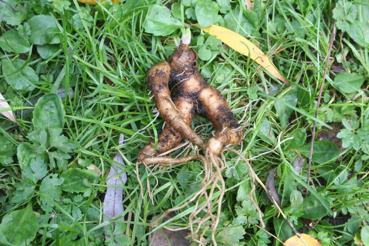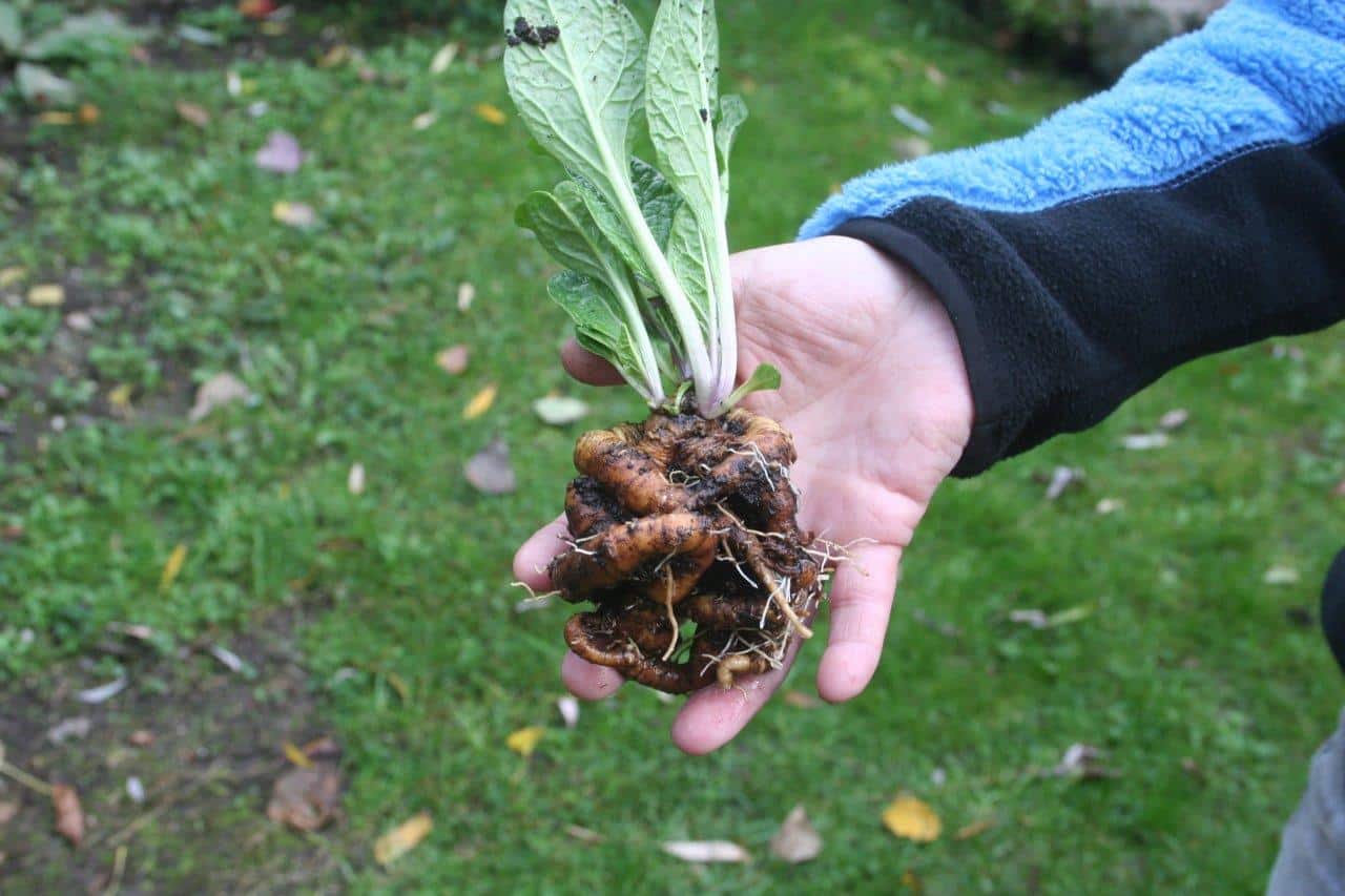 Die Wurzel geht senkrecht, tief in den Boden hinein.