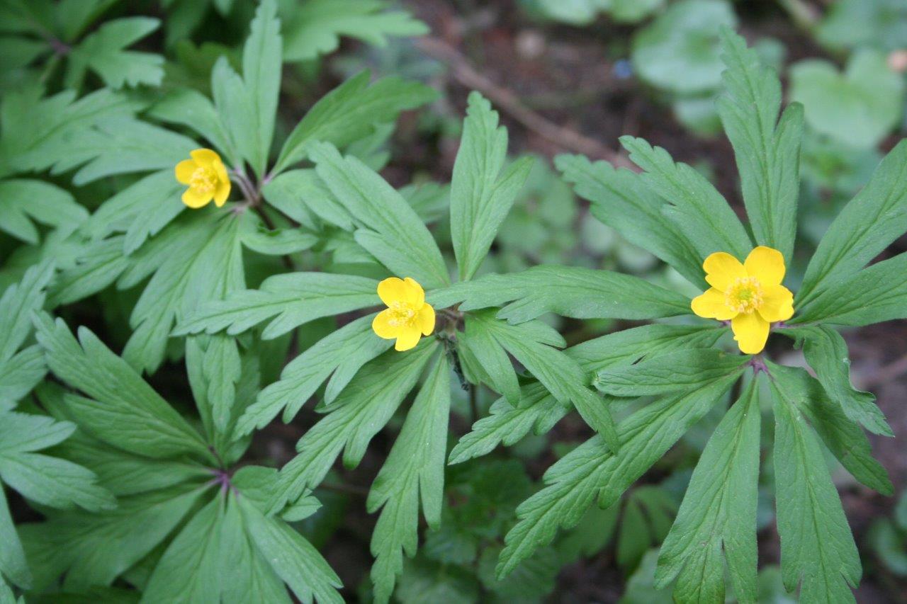 Neben dem Windröschen wachsen Primel Sumpfdotterblume Veilchen Bachnelkenwurz Beinwell Scharbockskraut Giersch Bärlauch Krokus Leberblümchen Schneeglöckchen Taubnessel Winterling Goldlack Schlüsselblume Narzissen Nelkenwurz