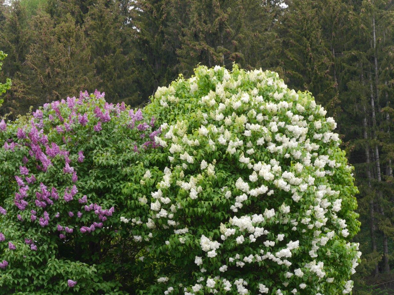 In unseren Gärten findet sich hauptsächlich der türkische Flieder (Syringa vulgaris), mit herz – eiförmigen Blättern.