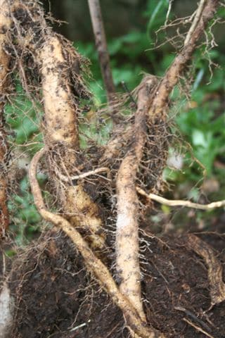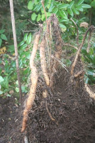 Die Wurzeln sind eher dünn und erst in der tieferen Erde knollenförmig.