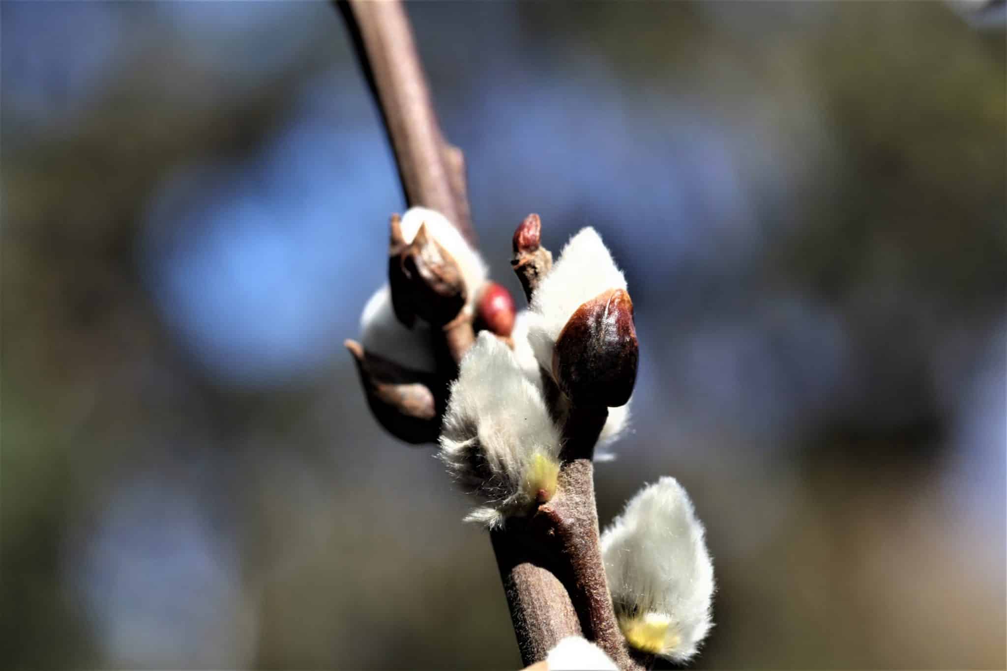 Der Palmkätzchenbaum, die Sal – Weide fällt im Frühling, mit ihren großen männlichen Kätzchen auf.