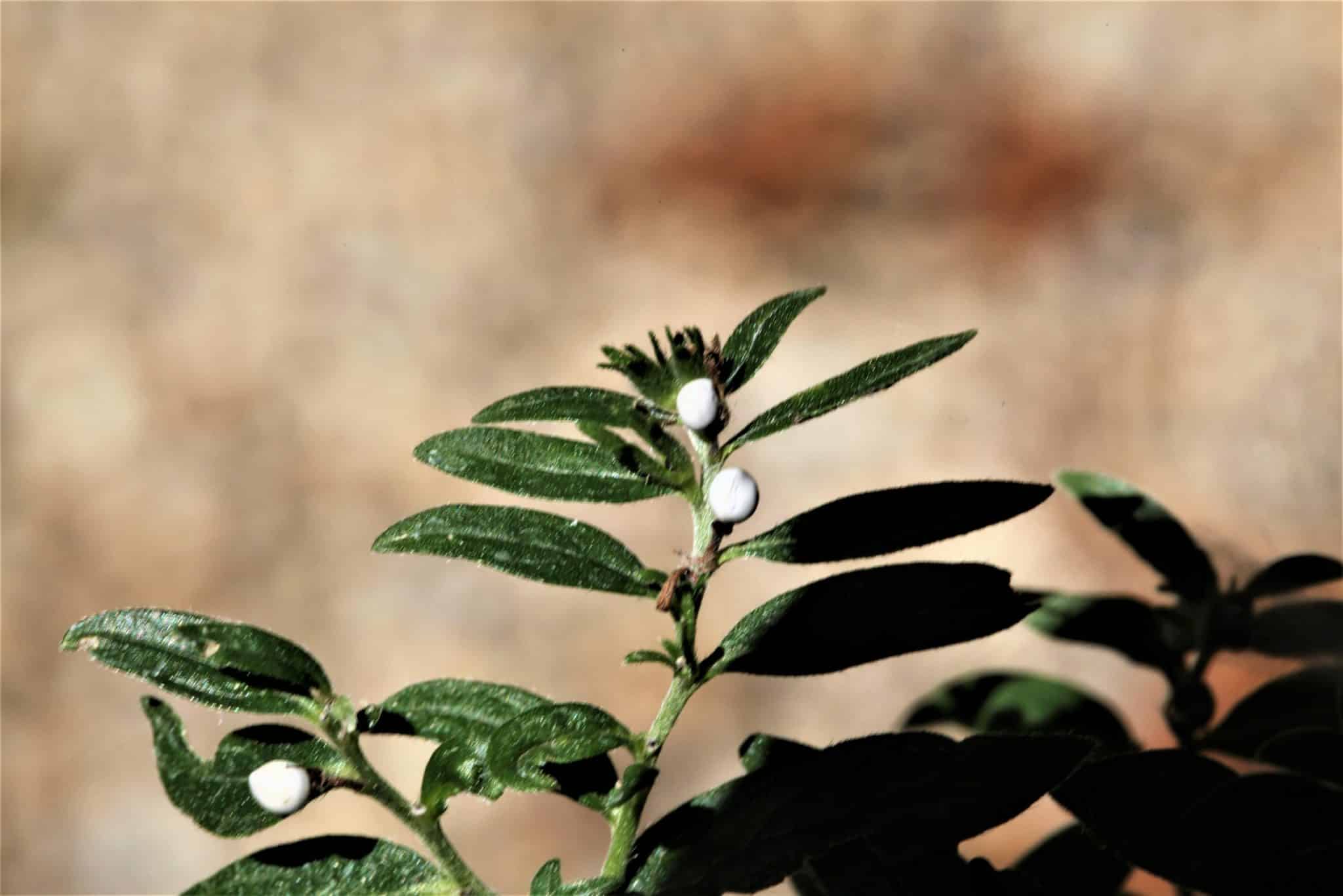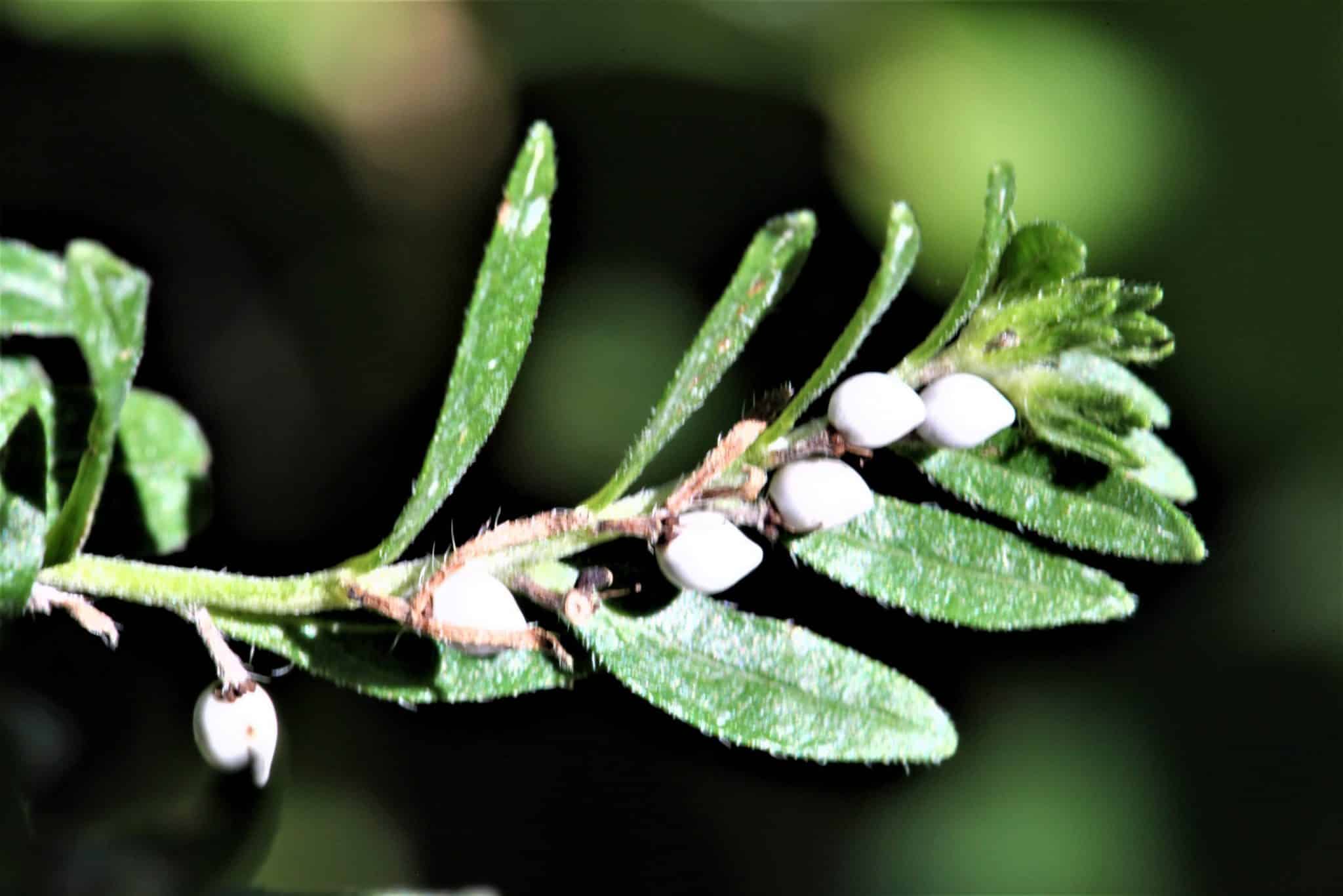 und mit glänzend weißen Fruchtteilen.