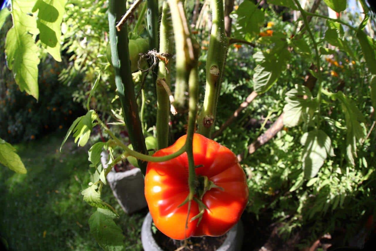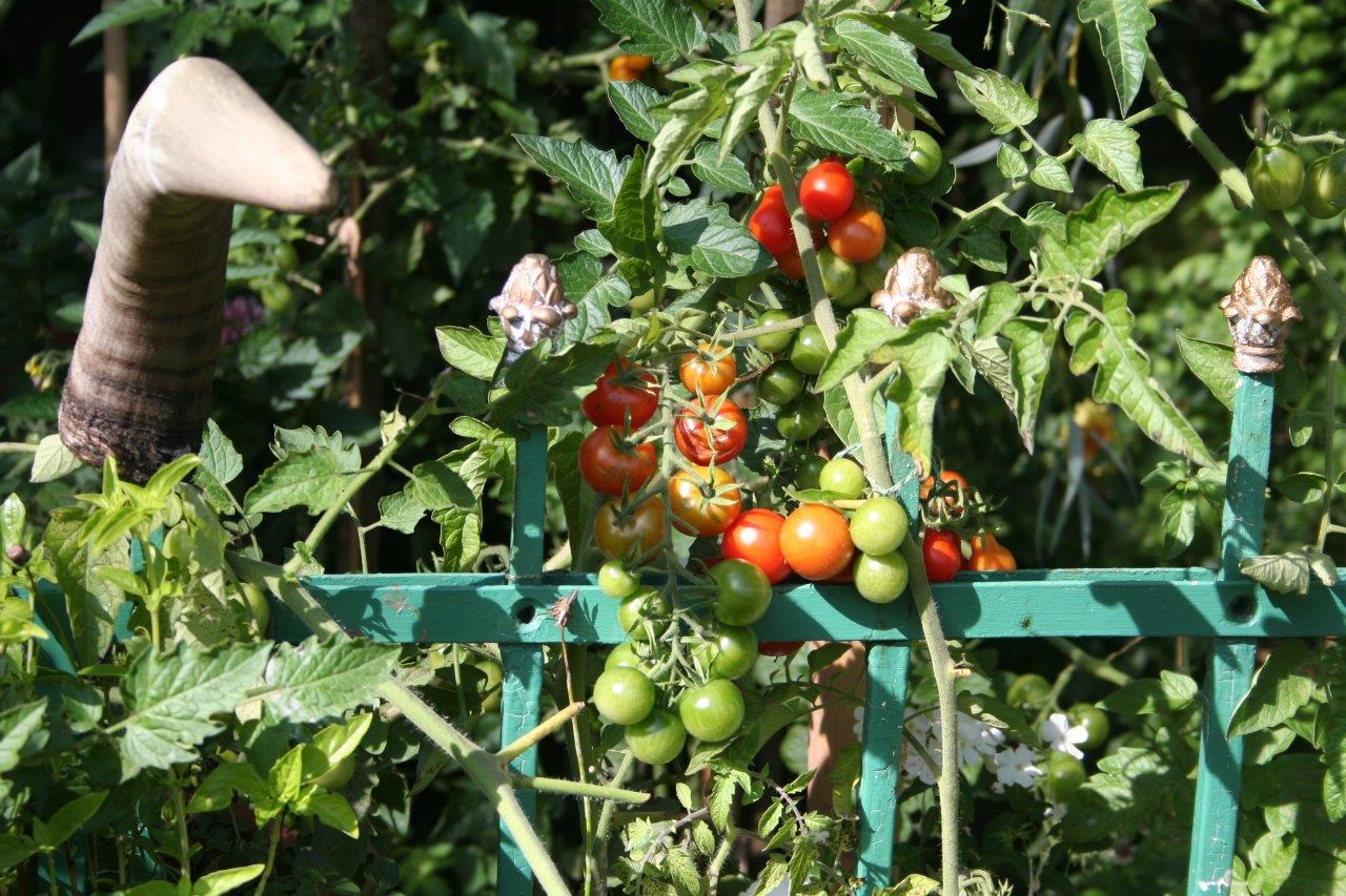 Tomaten im Heilgarten von „Licht aus der Jurte Shamanic Centre Vienna“ wachsen in der Erde, die wir aus dem Kompost des Heilgartens gewinnen.